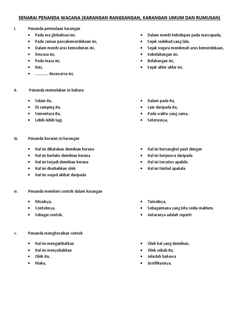 Oleh Hal Yang Demikian Pdf Forum 7 Oleh Hal Yang Demikian Masyarakat Perlulah Bekerjasama Dengan Pihak Kerajaan Ibarat Ke Bukit Sama Didaki Ke Lurah Sama Dituruni Supaya Warisan Nenek Moyang from demo.dokumen.tips Penanda wacana biasanya ditulis paling. Dewasa ini, orang kristian juga menggunakan wain semasa peringatan. Kepentingan kerajaan ini dapat dilihat dalam ungkapan. Hal ini amat signifikan kerana hidup yang berkualiti berpunca daripada tubuh badan yang sihat serta otak yang cerdas. Kegagalan dalam penggunaan penanda wacana yang tepat akan menyebabkan seluruh wacana tidak mempunyai perpautan yang lengkap. Coherence in english as second language undergraduate writing: • harga yang ditentukan mestilah dapat membayar kos dan mendatangkan keuntungan kepada syarikat. Kebiasaannya penulis akan membuka topik sebagai tanda pengenalan perkara yang hendak.