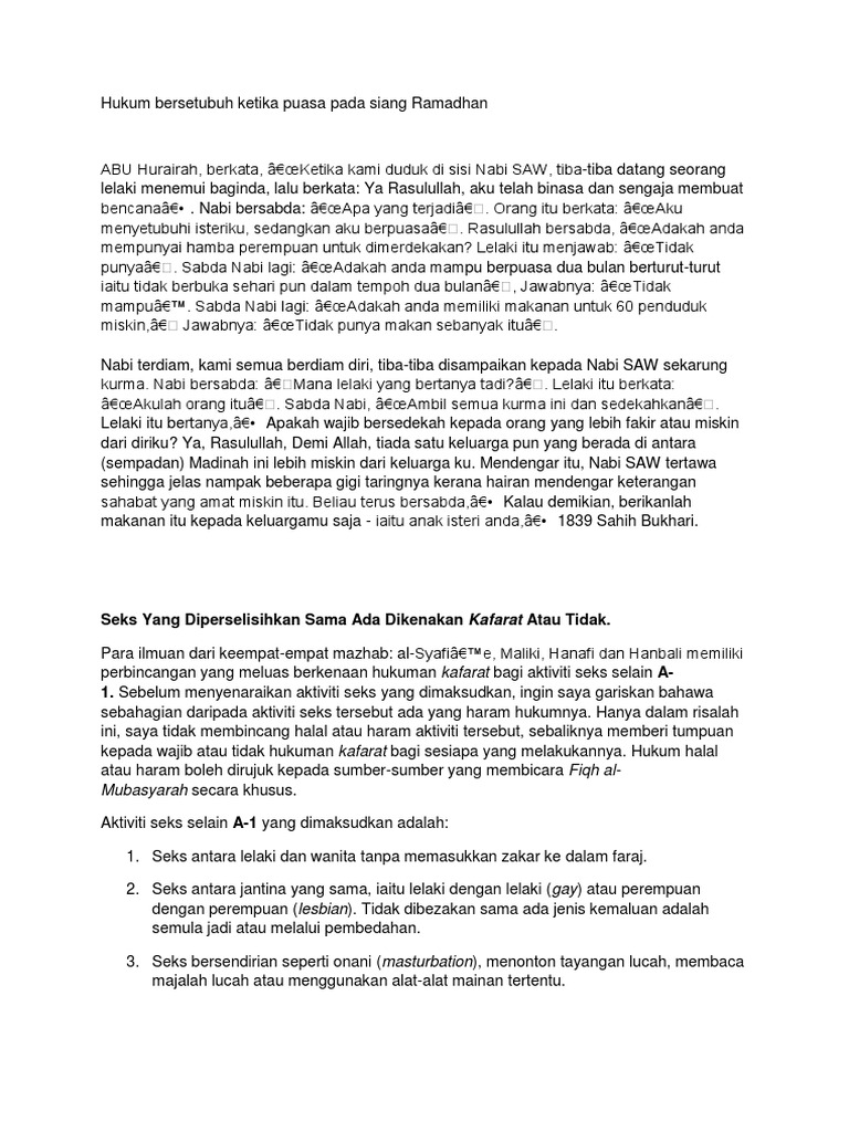 Menurut pandangan islam, onani yang dilakukan siang hari dapat membatalkan puasa. Hukum muntah saat berpuasa bisa dilihat dari hadis rasulullah yang berbunyi puasa yang dijalankan seseorang akan batal ketika adanya benda yang masuk dalam salah satu misalnya, mani keluar akibat onani atau sebab bersentuhan dengan lawan jenis tanpa adanya hubungan seksual. Adapun hukum yang membolehkan onani bagi remaja yang belum menikah, dapat dilihat dari pendapat imam ahmad bin hanbal yang mengatakan bahwa sperma atau mani adalah benda atau barang lebih yang ada pada tubuh yang mana boleh dikeluarkan sebagaimana halnya memotong dan. Mengeluarkan air mani dengan sengaja melalui jalan onani, adalah batal puasa. Simak penjelasan dari al muqarram tgk. Dan semua itu dilakukan karena allah semata. Onani adalah upaya mengeluarkan mani dengan menggunakan tangan atau yang lainnya. Lalu bagaimana dampak hukum karena onani atau masturbasi saat seseorang menjalankan ibadah puasa? Yang dimaksud hukum dalam hal ini apakah hukum onani atau masturbasi itu sendiri, atau kaitannya dengan batalnya puasa. Jumhur ulama dari madzhab hanafiyah, malikiyah, syafiiyah, dan hambali, serta lainnya menegaskan bahwa mengeluarkan mani secara sengaja tanpa hubungan badan, membatalkan puasa, baik dengan cara onani maupun lainnya. Jika dia bermesraan dengan istrinya dalam keadaan mengerti hukum. Sudut hukum | bilamana keluar mani seseorang dengan tidak ada unsur kesengajaan; Kata ini berasal dari kata isim (kata benda).